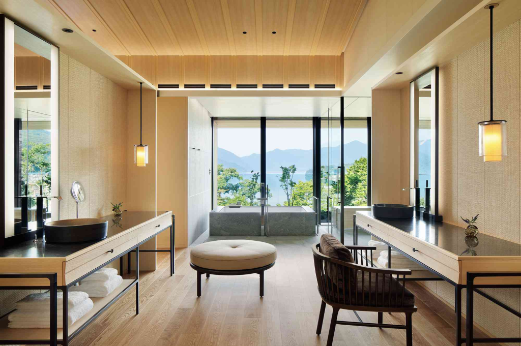While Nikko is a popular day trip from Tokyo, it’s worth heading up to Lake Chuzenji and staying at least one night, especially if you’re holing up at the Ritz-Carlton. Recognising the beauty of its natural surroundings, rooms are outfitted with floor-to-ceiling windows and furnished balconies so that guests can enjoy sweeping mountain or lake views (the latter is irrefutably the way to go). The property also offers a laundry list of seasonal experiences centred around the great outdoors, ranging from fly fishing to guided hikes, along with year-round activities such as morning meditations with a monk and woodcarving with local artisans. Once you’re ready for some pampering, the spa has one treatment room with a private outdoor onsen, a popular offering you’ll want to book in advance. Otherwise, head over to the communal facility and marvel at the striking stonework while soaking away. And whenever hunger strikes you’ll have the option between the Japanese restaurant or lake house-style outlet serving Italian-inspired fare, as well as a bar with an extensive selection of Japanese whiskies from all around the country.