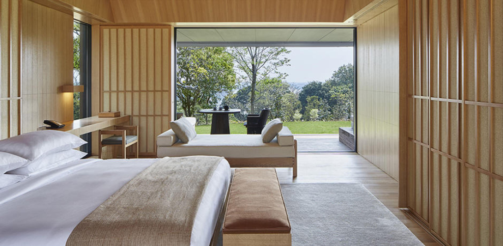 Over in Mie Prefecture, Amanemu is a luxurious ryokan-inspired property with a serene ambiance that sets the tone for a relaxing getaway. Spacious and elegantly appointed, each accommodation features deep soaking tubs with hot spring water on tap. Opt for one of the four villas for your own separate onsen-style space complete with bathing stations to evoke traditional facilities. Tsuki Villa is particularly special, with an onsen area that has both indoor and outdoor tubs. In addition to the en-suite basins, the spa also has two bookable pavilions that can easily be paired with a treatment of your choice. And if that’s not enough, the pool is also fed with hot spring water. While you’re here make sure to also ask the staff to arrange a lunch with an ama. These female free divers scour the ocean for edible jewels like seaweed, lobster and mollusks and grill their fresh catch in an amagoya hut. The Shima Peninsula is home to Japan’s largest population of ama and it’s the perfect opportunity to learn about this unique, ancient culture.