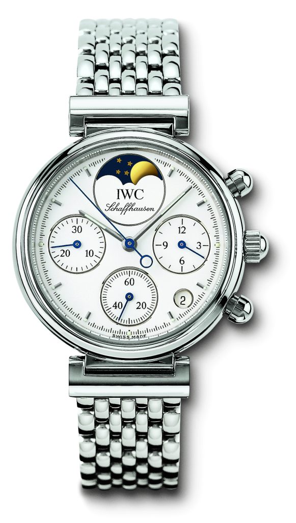 In contrast to the Porsche sports line, the Da Vinci represented the jewellery segment, equally for ladies and gentlemen. The Da Vinci Lady Chronograph brought highly developed technology to ladies’ wrists. Equipped with a semi-mechanical calibre 630 as well as date and moon phase display, it accompanied the Da Vinci collection throughout the years and became one of IWC’s most successful ladies’ watches.