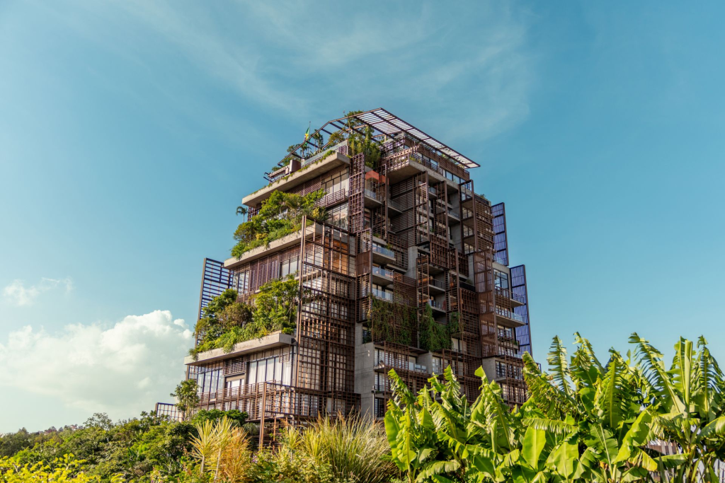 Out of the Cidade Matarazzo development – once a complex of 20th-century heritage buildings and now a vibrant mixed-use lifestyle centre – emerges an audacious, 93-meter-tall, 25-storey tower. Wrapped in wooden lattice and clad with over 10,000 growing trees indigenous to the Mata Atlântica rainforest, the Rosewood tower’s innovative design addresses urban environmental challenges by reintroducing native flora to the metropolitan landscape. Positioned adjacent to a renovated maternity ward, together the two buildings offer 160 guest rooms and over 100 resident suites, two pools and six restaurants. Rooms and public spaces maintain the brand’s signature “Sense of Place” philosophy, simultaneously commemorating Brazil’s rich past and sustainable future. Under the artistic direction of French designer Philippe Starck, interiors celebrate Brazilian talent: locally sourced woods, marbles from Bahia and Paraná, handcrafted furnishings by icons like Oscar Niemeyer and Sérgio Rodrigues, and nearly 450 works of art by over 50 Brazilian artists and artisans.