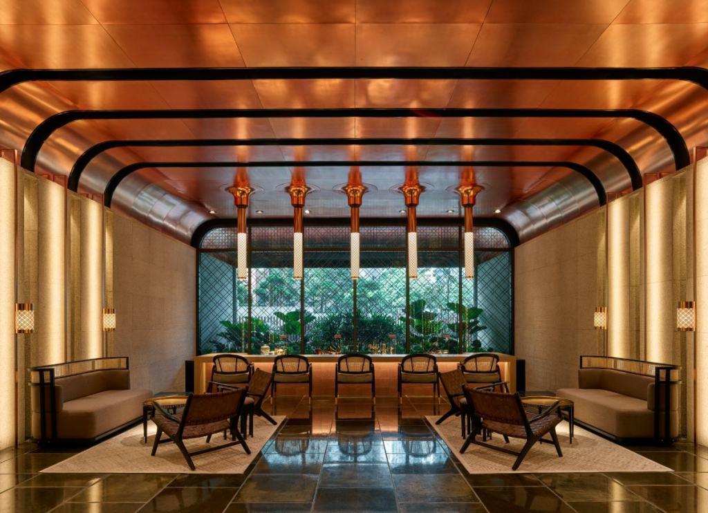 In the heart of Kuala Lumpur’s Golden Triangle, The RuMa Hotel and Residences is a sophisticated urban sanctuary where Malaysian heritage meets contemporary elegance. Named after the Malay word “rumah” for “home”, the hotel is a thoughtful tribute to the country’s rich cultural tapestry. Designed by Malaysian firm BEP Arkitek with interiors by Shanghai-based architecture and interior design firm MQ Studio, it artfully blends colonial-era grace with local craft traditions. Guests are welcomed by antique timber pillars salvaged from historic kampung homes, a dramatic terracotta birdcage entrance inspired by the country’s tin mining history and a custom-made golden kebaya sculpture by Malaysian designer Bernard Chandran. Warm copper ceilings, handwoven kelarai screens, rattan detailing and rich timber panelling create an intimate, tactile atmosphere throughout the 253 rooms and public spaces – a refined fusion of nostalgia, craftsmanship and modern restraint that feels like a truly luxurious home away from home.
