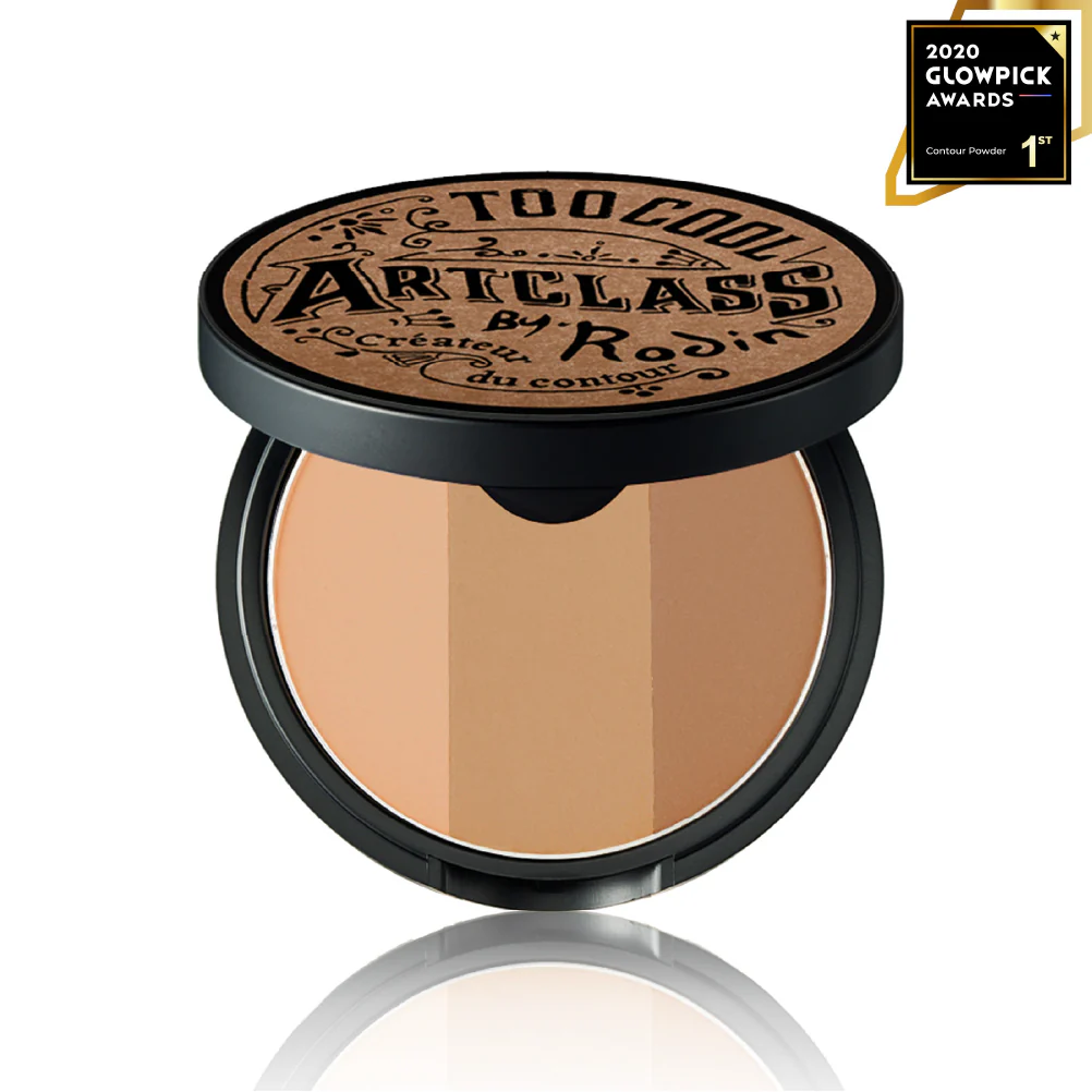 The Too cool for school three-colour contour palette is lightly swept along the outer edges of the face, subtly refining the contours without emphasising harsh shadows.