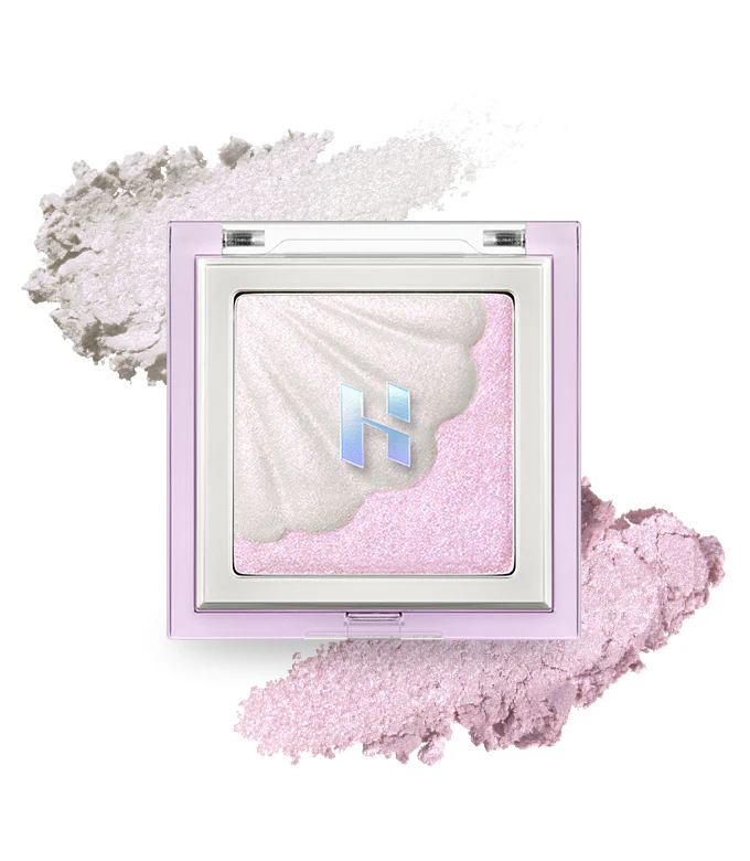 Holika Holika’s highlighter is applied to the high points of the cheekbones and the bridge of the nose. Its fine sheen adds dimension under natural light.