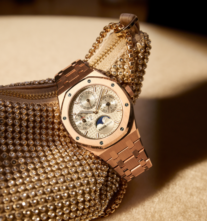 AP’s first- ever 38mm Perpetual Calendar Royal Oak combining 18k pink gold and a beige dial.