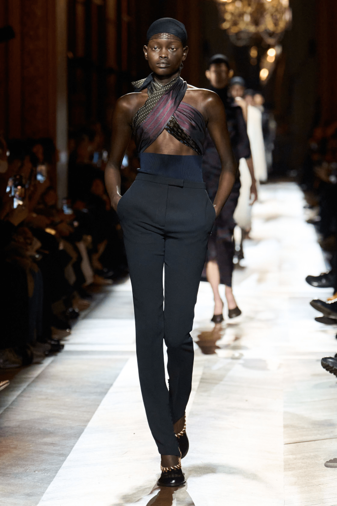 Creative director Olivier Rousteing elevated a cosy array of oversized shapes, ranging from winged cardigans to slouchy sweats, to welcome the new season. Voluptuous rib-knit sweaters and dresses, characterised by their slouchy and bat-winged designs, stood out in particular. This collection aimed to demonstrate that a woman can express confidence and boldness without relying on a truckload of gold or rigid styles.