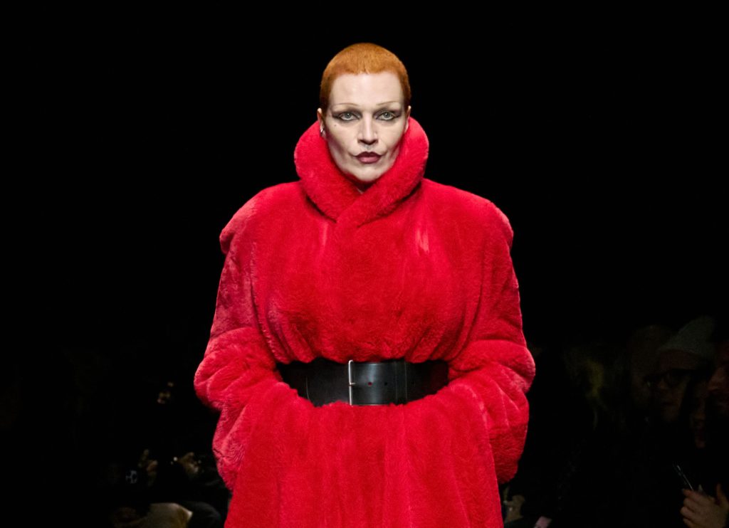 Charged with creating an autumn/winter collection to kick off the brand’s centennial year, Silvia Venturini Fendi turned to the staples that have defined it throughout the years. Shearling was quilted and patchworked to mimic the noble furs of the house’s origins, while satin balza skirts and sculptural corolla jackets paid homage to midcentury couture. The colour palette, inspired by Rome at sunset, transitioned from deep greens and petrol blues to rich chocolate browns and graphite before softening into terracotta, dusty rose and buttery neutrals. A final flourish of bubblegum pink and scarlet injected a vibrant contrast, closing the collection on a bold note.