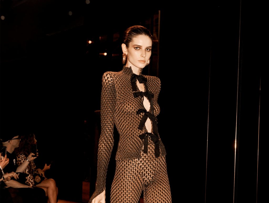On the final evening of Paris Fashion Week, Saint Laurent delivered an unforgettable spectacle beneath the Eiffel Tower. Against a backdrop of brown-hued marble projections, models took to the runway in pieces that blended strength and femininity. Sharp shoulders and rich, jewel-toned colours dominated, with ribboned highneck dresses paired with pointed stilettos. Anthony Vaccarello proved that sometimes, sticking to classic but well-tailored pieces like pencil skirts and coats can still make an impression.