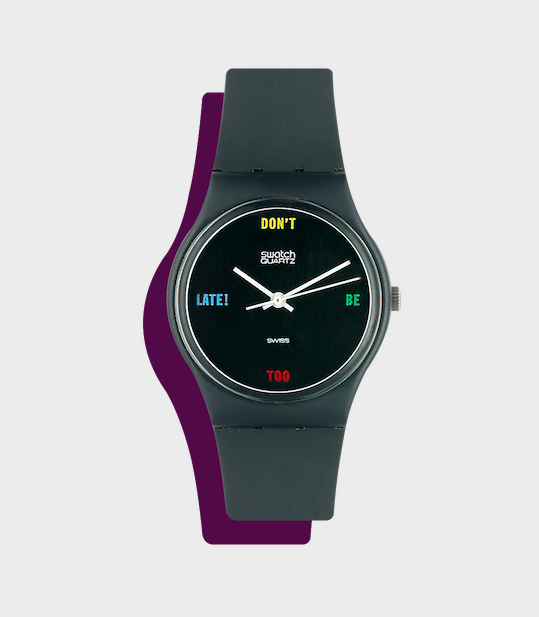 My first swatch. A gift I received when Swatch was not yet available in Italy, and therefore the foundation of the “cool factor” embedded in the brand’s core identity. Swatch is a style signifier – it is there to express your personality and affirm your uniqueness. As an Italian, I like the fact that it allows you to be late – although not too late! I loved that we were able to reinterpret this slightly provocative phrase later on, when we launched “Don’t Be Too Square” (SUAB100).