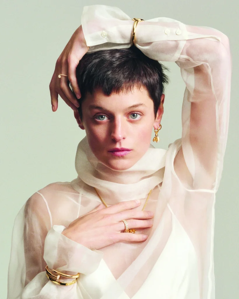 “I am honoured to showcase the versatility of these iconic Cartier Juste un Clou designs. The collections are elegant yet meaningful and timeless, which I love in jewellery. The designs resonate for generations.” – Emma Corrin