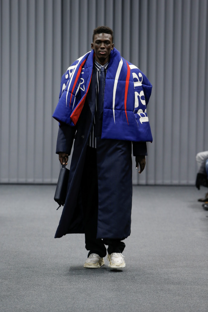 Featuring inflated silhouettes, raw edges and upcycled materials, the collection was a clear indication of what would become Demna’s signatures. Produced in collaboration with his brother Guram Gvasalia, pieces subverted the popular logomania of the time purely emphasising quality, function and refinement. Though it may appear relatively pedestrian today, the exaggerated proportions and anonymous presentation was truly revolutionary for its time.