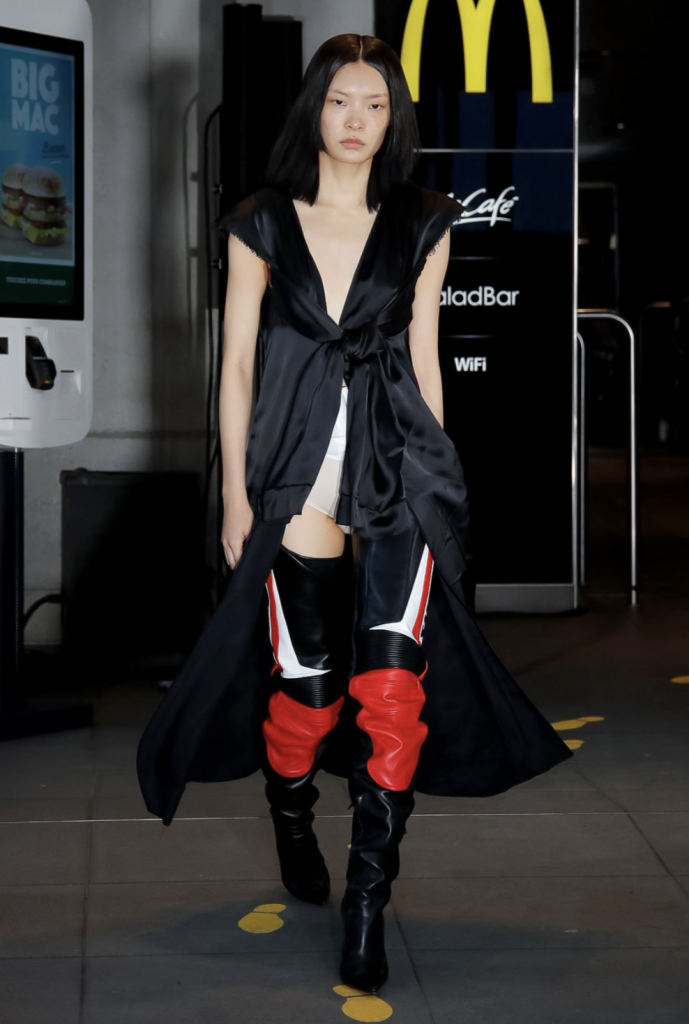 The last of his work with Guram, McDonald’s hosted an introspective of capitalism with models in moto boots, name tags and reconstructed fabrics. Reimagining life’s most ordinary in passport holders and fast food, it’s a landmark in Demna’s specific design influences and development of a comprehensive visual identity, and where runway locations get progressively more astonishing.