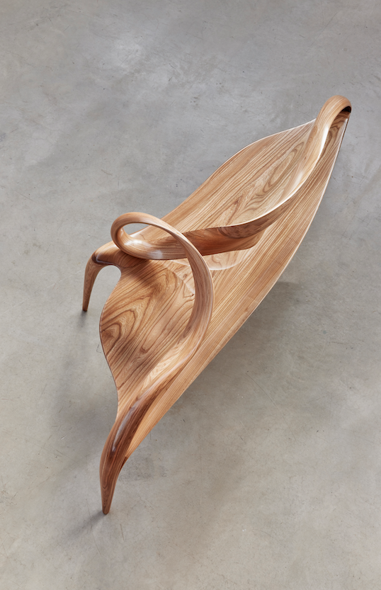 Entirely self-taught, he began making furniture as a boy and founded his studio at just 20. Today, his workshop produces sculptural furniture and monumental works collected by the Met in New York, the Centre Pompidou in Paris and private clients across the globe. His signature is the curve – fluid, organic, alive – born from layering and laminating multiple veneers in unexpected shapes in a deep dialogue with wood. Blurring the line between design and art, he shapes each piece by hand, time and a restless pursuit of new forms.