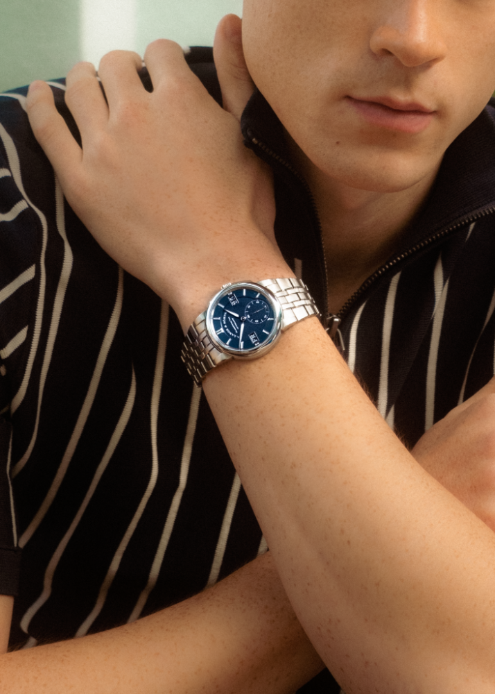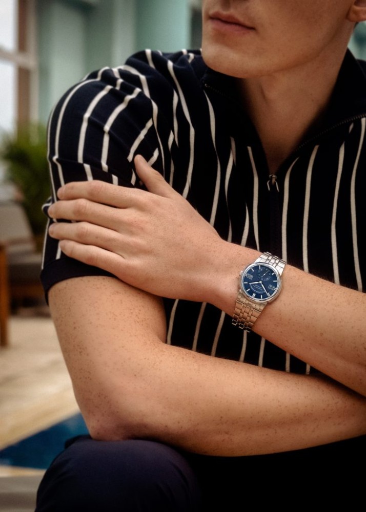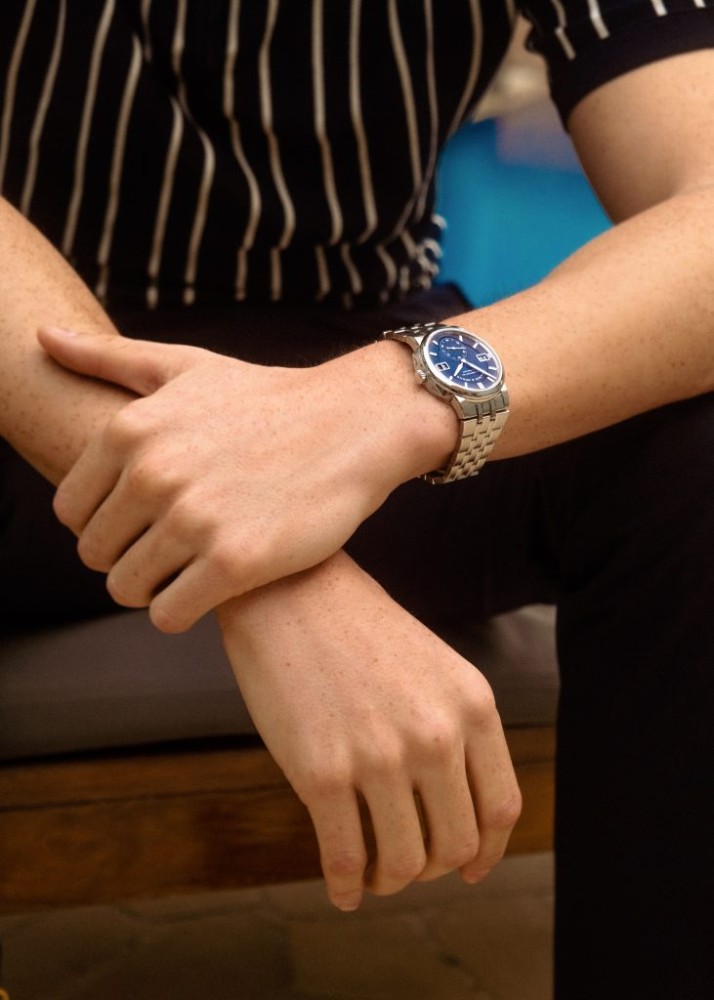 The ODYSSEUS is completed with an integrated stainless-steel bracelet – a complex five-row design with brushed surfaces and chamfered edges. The watch is designed for those with an active lifestyle, so the bracelet can be micro-adjusted up to 7 millimetres for the utmost comfort.