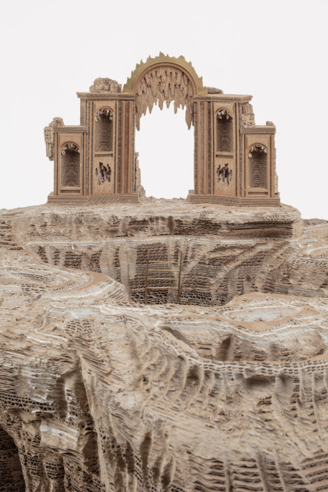 I think in layers and in stratification – it’s really the way I construct my works – and cardboard is also made of layers. It’s an incredible material. Sculpture is all about the shadow and light on the piece that will make you feel its shape. Cardboard contains its own shadow, so when you use cardboard in an art piece, you have a constant vibration that is impossible to recreate with something flat. When you start working on cardboard, if you sand it, you will erase the holes, so it’s flat and it’s like light.