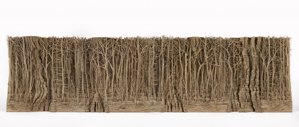 Eva Jospin crafts hauntingly beautiful forests and entire universes out of cardboard, an everyday material that she sublimates. The Paris-born artist’s fantastical woods are those of fairy tales, full of mystery and the unknown yet devoid of human presence. Inviting us to embark on an introspective journey, her romantic, poetic scenes are the ideal backdrop for our mental projections in which we can imagine different stories unfolding.