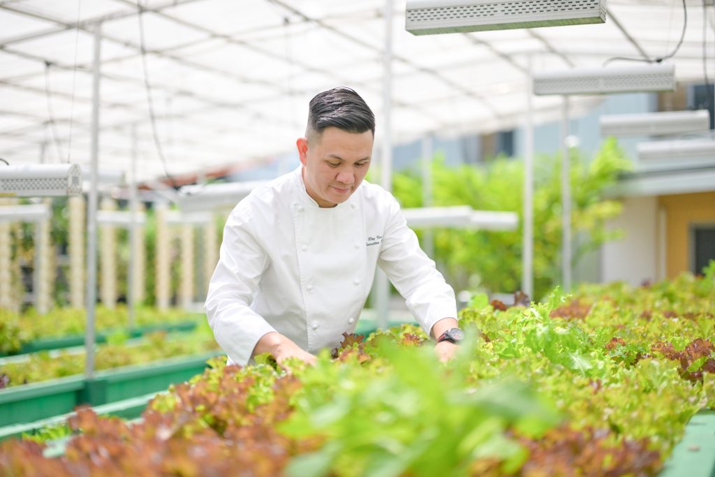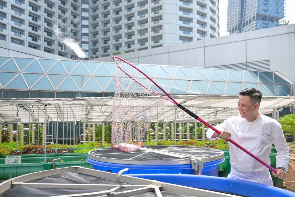 Walking around Singapore’s bustling City Hall area, one would not imagine there is a farm and fishery right above them. Yet, there is a thriving one a few floors above the crowds, tucked in a rooftop space between Fairmont Singapore & Swissôtel The Stamford.