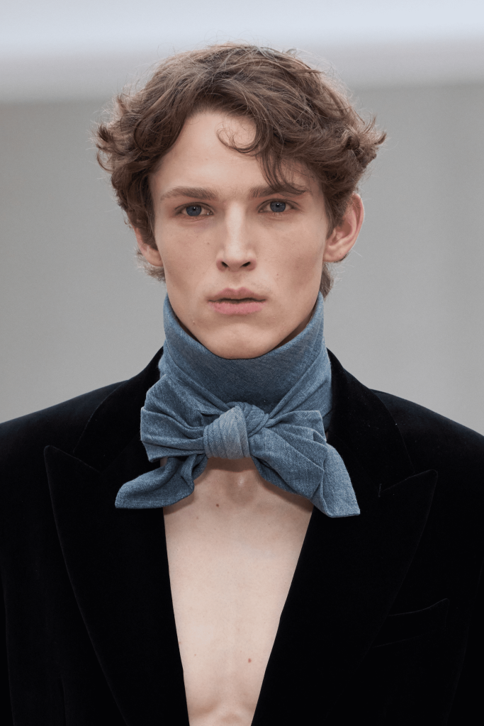 Escaping the office for the summer, the tie symbolised a new kind of hybrid elegance for men this season. At Saint Laurent, the traditional neck accessory was crafted more like a neckerchief, and styled tucked into a flowy shirt, while AWGE made a fashion statement with its oversized faux-fur version. Dior’s 19th-century-inspired tailoring – think waistcoats and tailcoats – was accompanied by romantically big bow ties.