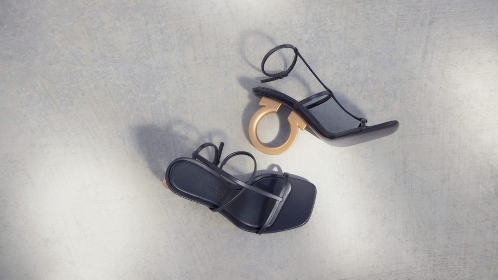 From wardrobe to accessories, the collection introduces pieces that are sleek and seductive, from handbags to sandals such as the Elina – which has a graphic Gancini heel – all demonstrate Davis’ minimalist interpretations.