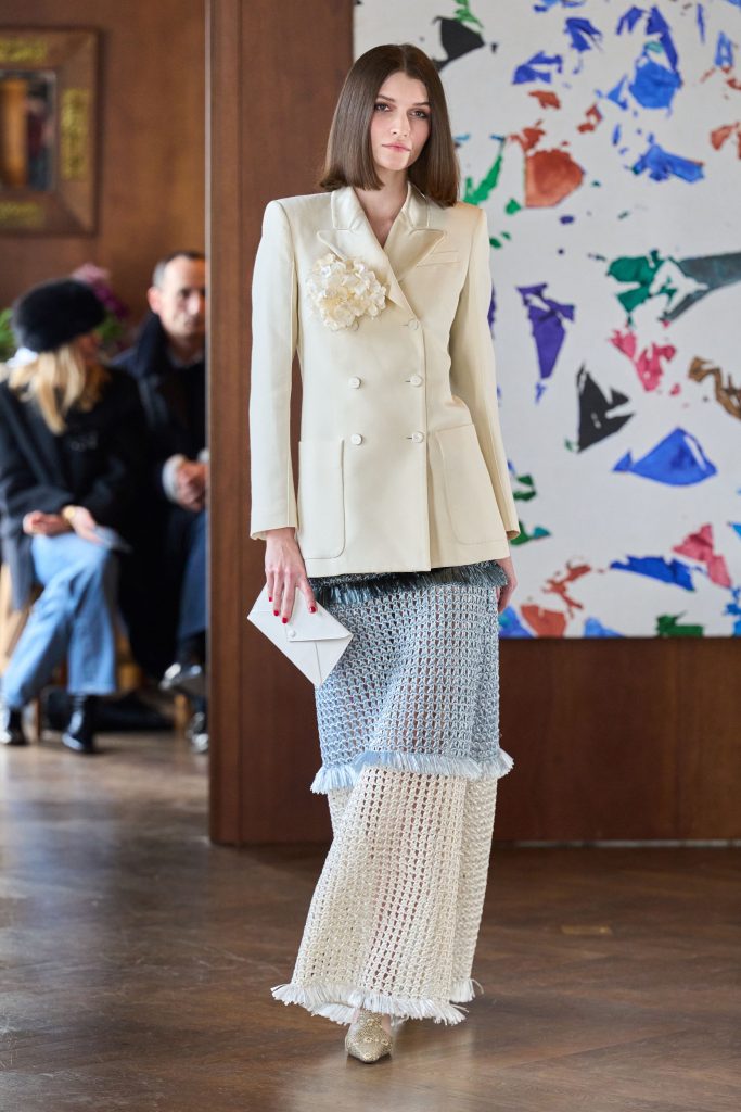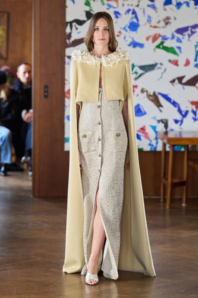 Presented in a private residence, The Scent of Iris: A Celebration of Beauty centred on the flower as a symbol of intimacy and memory. Cream, apricot and silver-grey tones supported knitwear, lace and natural textiles that emphasised tactility. Relaxed silhouettes and layered styling reframed couture as lived elegance rather than spectacle, merging artisanal detail with quiet domestic refinement.