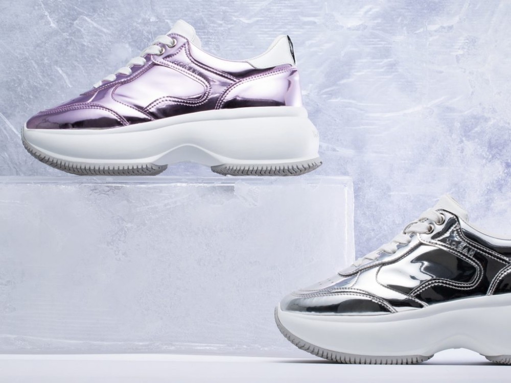 Hogan also introduces a new contemporary take on its famed Maxi Active sneakers. Metallic pink adds a serious dose of glamour to all your looks.