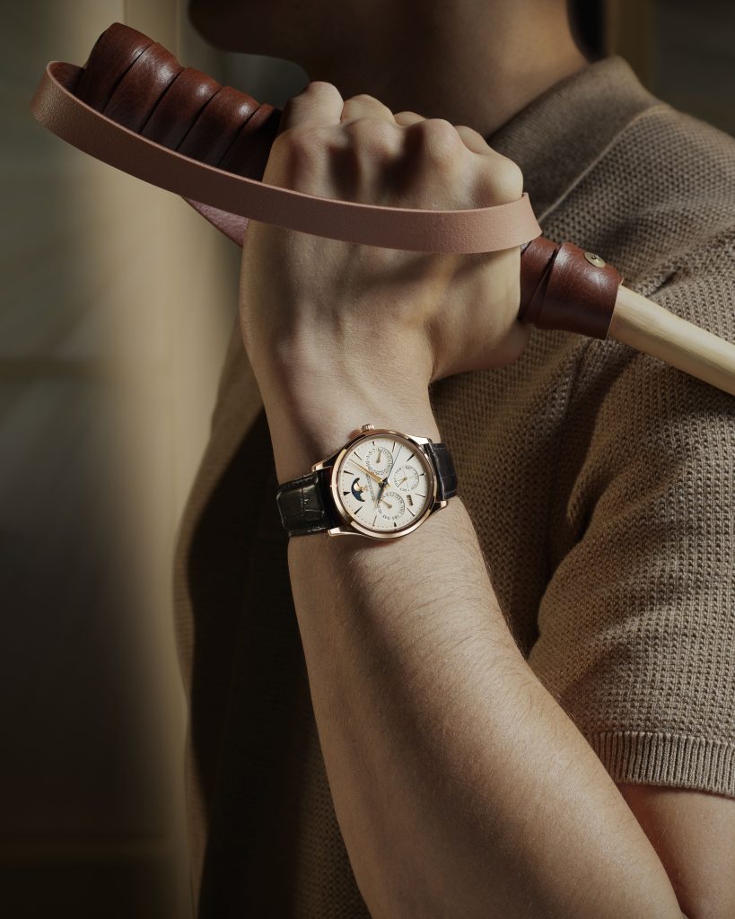 Rather than redesigning its lines, this year’s Master Ultra Thin Perpetual Calendar focuses on precise, almost invisible refinement. The 39 mm proportions remain disciplined, while a slimmer case and slightly elongated lugs help the watch sit naturally on the wrist. On the dial, dauphine hands with dual-surface finishing, slender markers and finely textured subdials bring greater clarity and depth to the display.