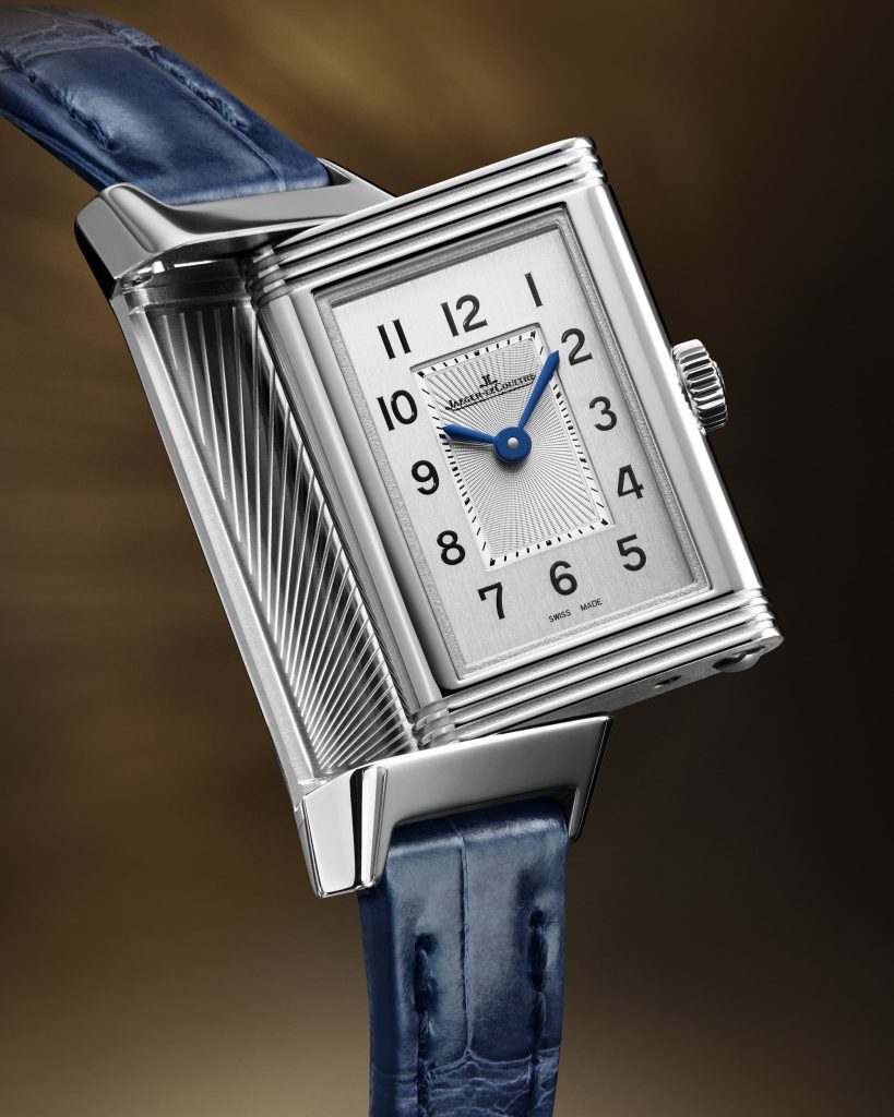 The dial combines sunburst guilloché with a vertically brushed frame, giving a clean, understated look. Paired with a steel bracelet or blue alligator strap, it expresses subtly different moods. The reversible caseback remains a blank canvas for engraving or lacquer customisation, making it an excellent holiday gift.