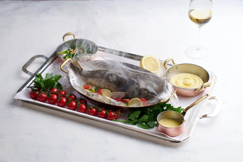 Chef Sin’s philosophy of seeking the “seasonal and sustainable” is best seen in the signature main courses. Inspired by coastal Italian villages, the Baked Whole Wild New Zealand Blue Cod. It is baked and served with a burst of rich lemon butter sauce that reveals the tenderness of the fish.