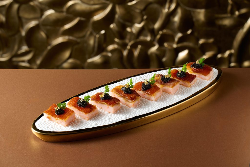 Cantonese cuisine has long celebrated “stuffed” delicacies, but here the idea is reinterpreted with finesse. Tender pigeon, known for its delicate gaminess, is filled with springy shrimp mousse, before being crowned with pearls of caviar. The result is a layering of land, sea, and luxury. Each bite tells a story of contrast, subtle yet rich, traditional yet daringly modern.