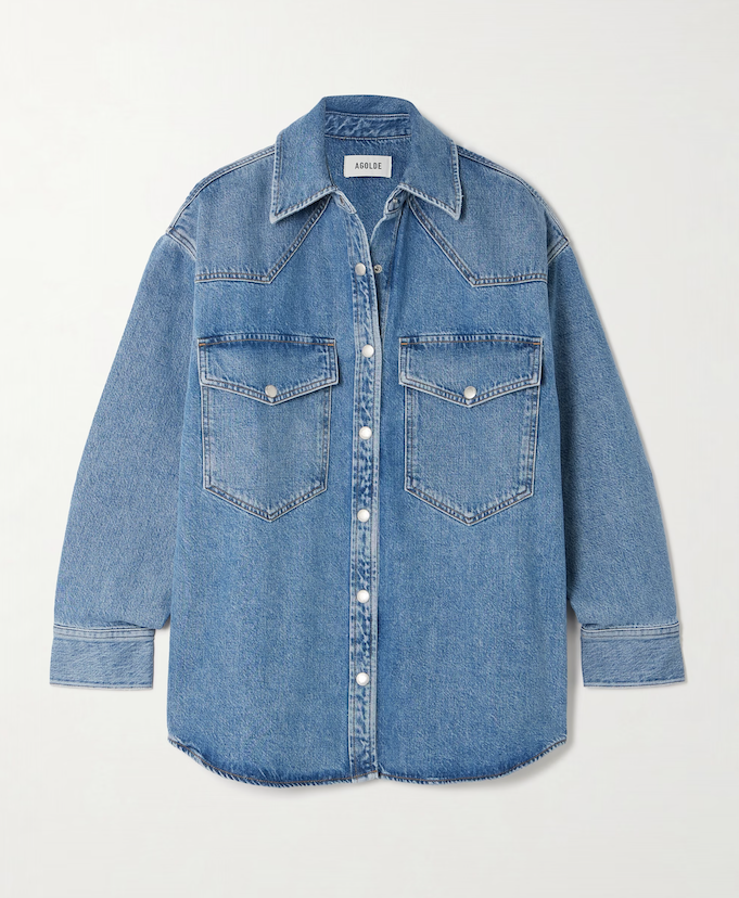 We all know our way around jeans and denim skirts, but the ubiquitous blue fabric gets a little trickier to figure out as soon as it jumps to our tops. Great for layering, one of the easiest ways to style your denim shirt is to treat it like any other button-down and throw it under a jacket or blazer. Feel free to add additional layering like a plaid shirt underneath. You can always fall back on straight-leg jeans down below, though trousers that match your jacket or bring in another neutral tone will add even more polish to your final look.