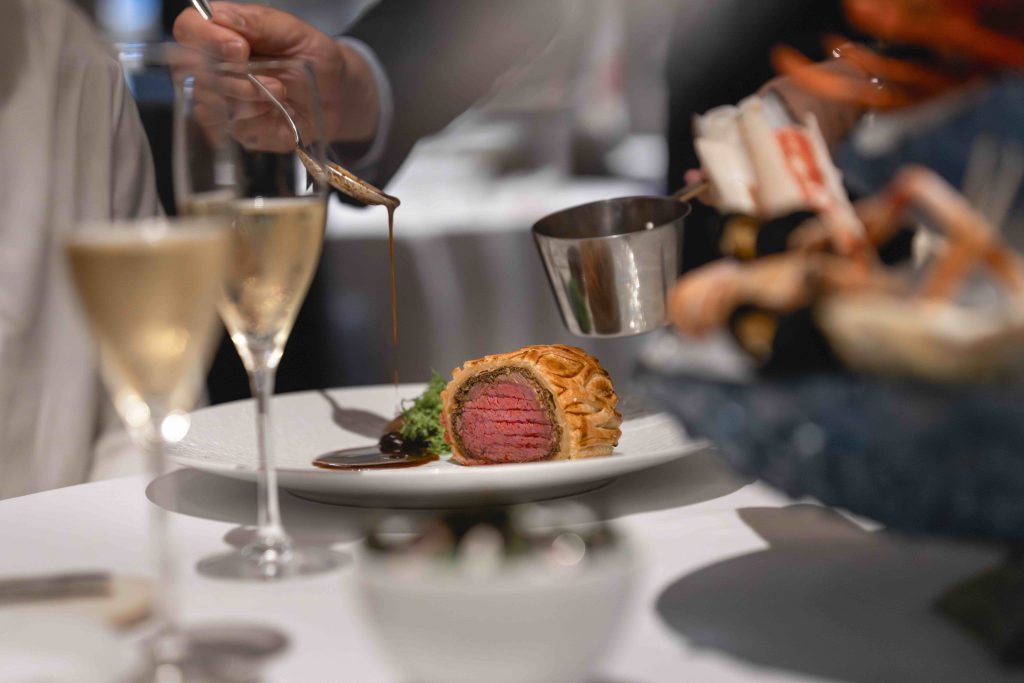 Then there’s also the Christmas Eve Dinner, which features an indulgent seven-course menu, beginning with an Amuse Bouche of No.2 superior Oscietra caviar with Alaskan king crab and celeriac dishes, followed by dishes like Gillardeau Oyster Custard, Line Caught Seabass with squid risotto, Oven Roasted M9 Australian Wagyu Tenderloin, and Blood Orange & Ginger Sorbet with mulled wine jelly, paired with a glass of Ruinart Blanc de Blancs Champagne.