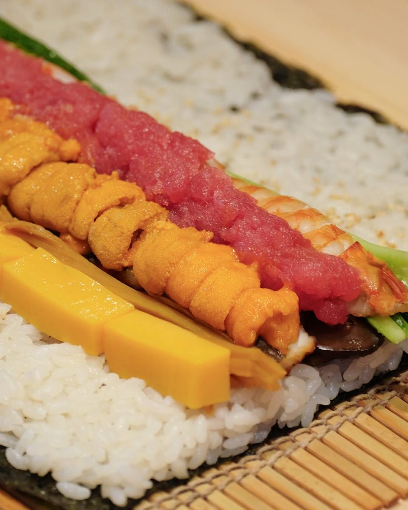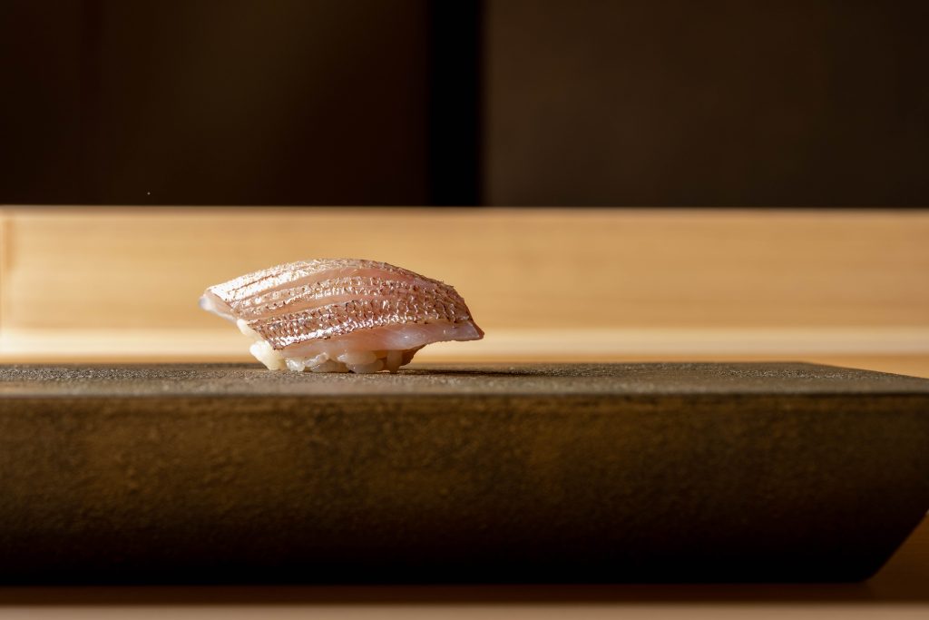 Sushi Fujimoto by Kenichi Fujimoto – who began his career in hairdressing before being introduced to the world of sushi at the age of 22, and subsequently honed his skills under sushi maestros like Shinji Kanesaka and Takashi Saito – continues his dedication to the artistry of traditional Edomae sushi at his eponymous restaurant. Simplicity is the watchword here – seasoning is used minimally to allow the natural essence of each ingredient shine through. Take, the tuna hand roll, made up of three distinct cuts – akami (lean tuna), chūtoro (medium fatty tuna) and ōtoro (tuna belly) – and paired with pickled radish, chopped scallions and white sesame.