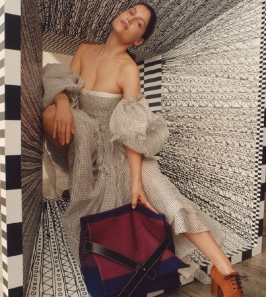 The brand is known for their experimental ideas and specialism in luxury leather made goods, and today, Creative Director Jonathan Anderson pays homage to that heritage while bringing a modern sensibility to his designs. This same vision comes through the new publications images, in which Casta shines in bustiers, dresses, cocoon coats and turtleneck sweaters.