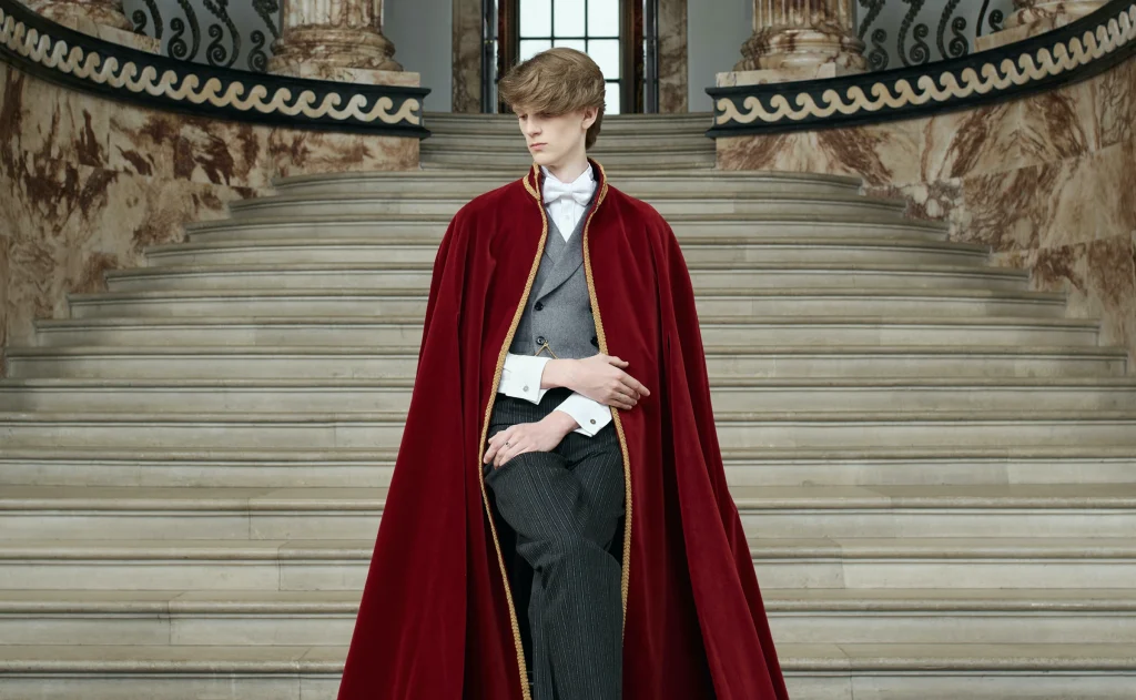 This season, Hedi Slimane paid homage to a bygone era of English style with a collection entitled “The Bright Young”. Using traditional English fabrics like 1920s summer cashmeres and wools, the collection showed boating blazers and trimmed jackets in a reflection of English tailoring. Celine’s heraldic patches were made of polished silver cannetille, which replicated traditional embroidery techniques.