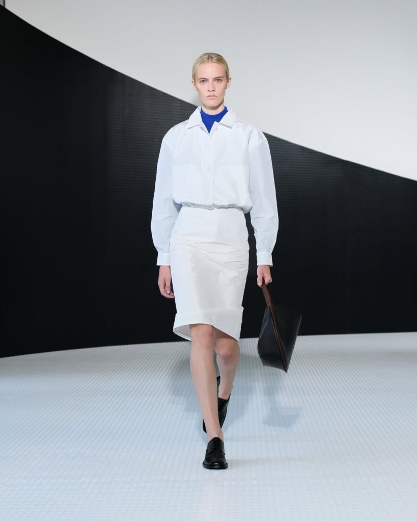 At Milan Fashion Week 2025, Simone Bellotti made his Jil Sander debut with a collection shown at the brand’s Piazza Castello headquarters, marking its return to the venue after eight years. Staying true to the house’s minimalist DNA, the clean and structured pieces were elevated by details inspired by artists Richard Prince and Scheltens & Abbenes, whose works drew on trompe-l’oeil. On the surface, the garments appeared pared back, yet closer inspection revealed meticulous tailoring and refined materiality.