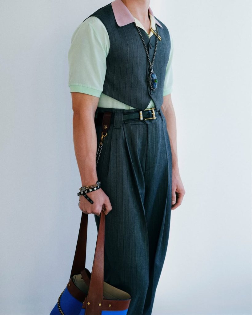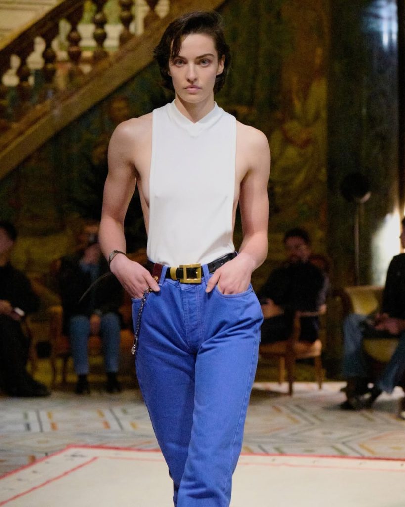 Gucci’s first show under Demna unfolded as a family drama, titled La Famiglia. Presented through the short film The Tiger, actors and models embodied characters ranging from movie stars and directors to style icons and women on the verge of a breakdown. Classic Gucci codes reappeared throughout: GG monogram, red-and-green stripes, horsebit details, and the sensual silhouettes of the Tom Ford era—all reframed in a new context. True to Demna’s style, irony remained a sharp undertone, keeping the presentation as intriguing as it was theatrical.