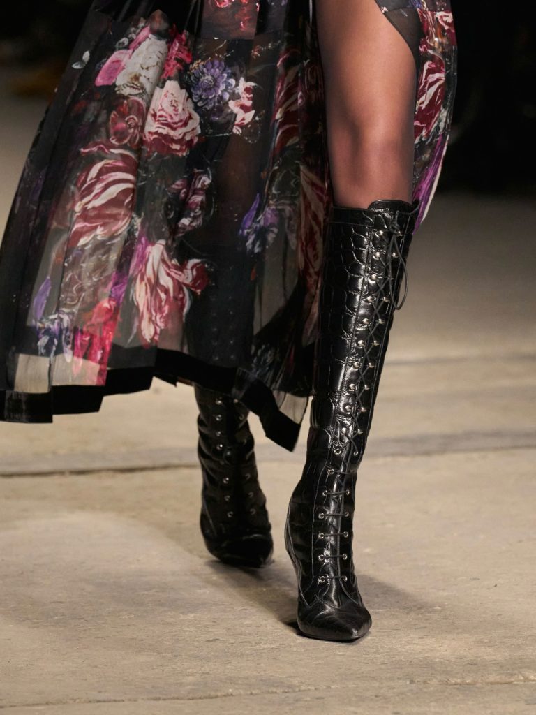 Boots appeared again and again. Max Mara’s beige over-the-knee boots elongated silhouettes effortlessly while Gucci, Marni and Roberto Cavalli favoured streamlined black styles. Nothing overly complicated – just clean, decisive lines that completed the outfit rather than competing with it.