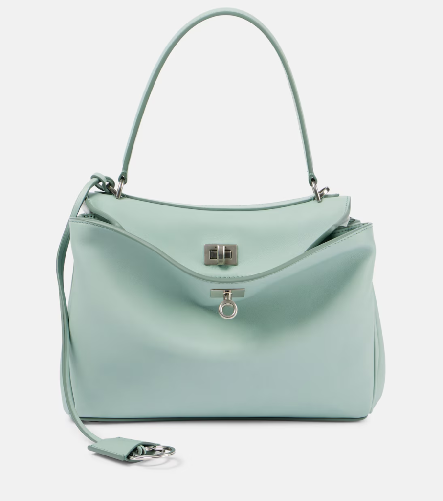 The Rodeo small leather tote from Balenciaga might become the It-bag of the year, especially in its mint-coloured iteration. The soft, minty leather gives the structured tote a fresh, youthful energy that feels right at home in wardrobe. re