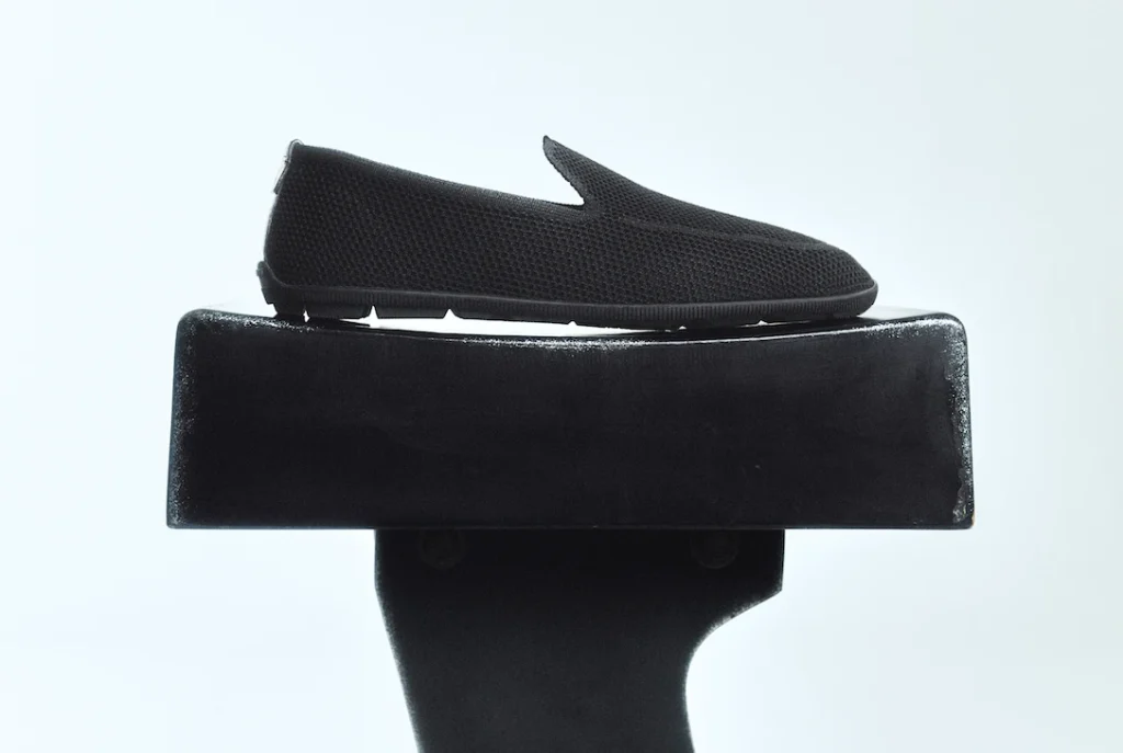 yet sophisticated style. This season’s selection of men’s shoes distils ease of movement into essential lines and a vision of elegant comfort. The upper gently embraces the foot, while Japanese-inspired geometric lines trace the sole. Available in suede and iconic black mesh, with or without laces, new models come in classic black, white, sand and the brand’s signature greige. Shown above are loafers inspired by Armani’s hallmark deconstructed jackets, with removable insoles and an extremely flexible upper that makes for a versatile, travel-ready look.