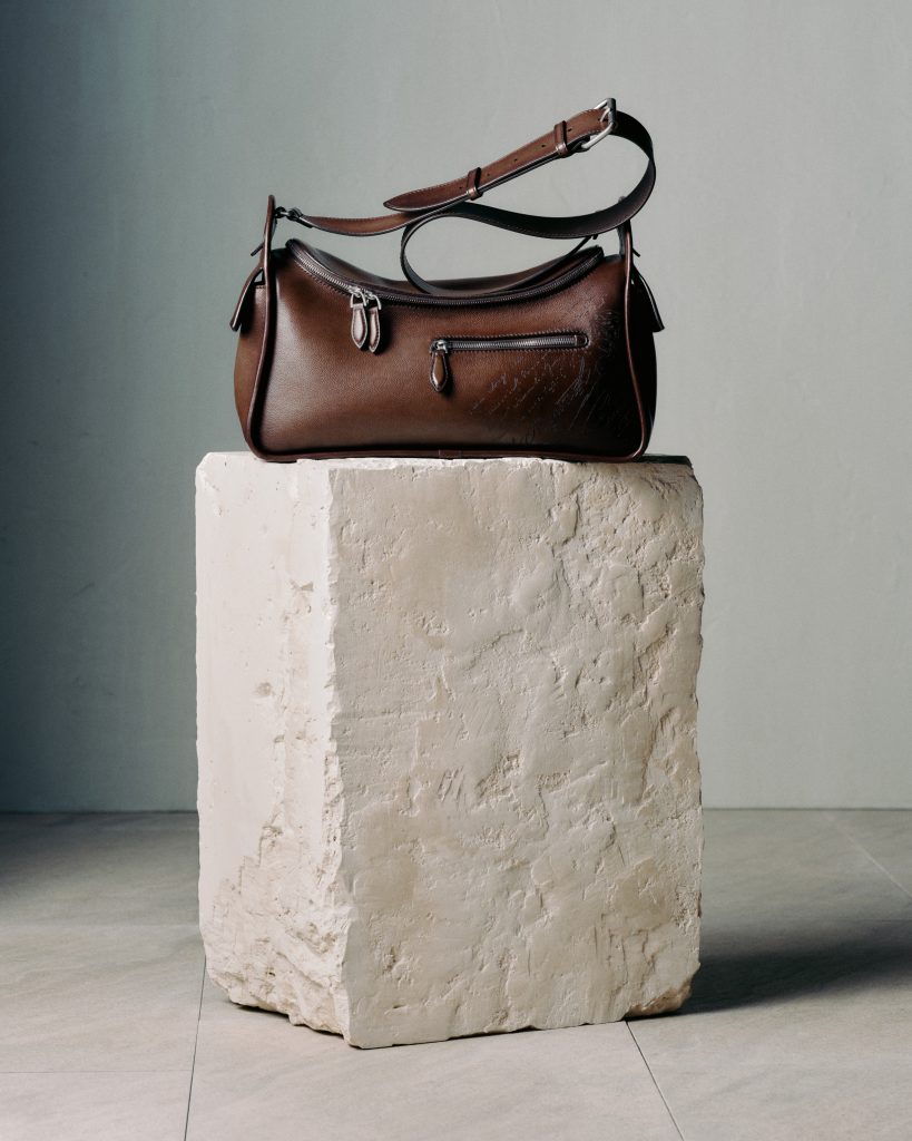 With a name that translates to “long, adventurous journey”, Berluti’s new line of bags is designed for travelling around the city – especially by bike. Périple, which showcases the same fine craftsmanship and meticulous precision that defines the Berluti brand, is made with supple, full-grain Venezia Softy leather. The inaugural piece, the Barrel bag, is imbued with the brand’s signatures, from the leaf-shaped chapes and edge binding to a zipped side pocket in the “1 Jour” style and the big U-shaped main zip opening. It comes in several variants: the Hobo and Sling for everyday city use and the bigger “landscape” format, the Weekender.