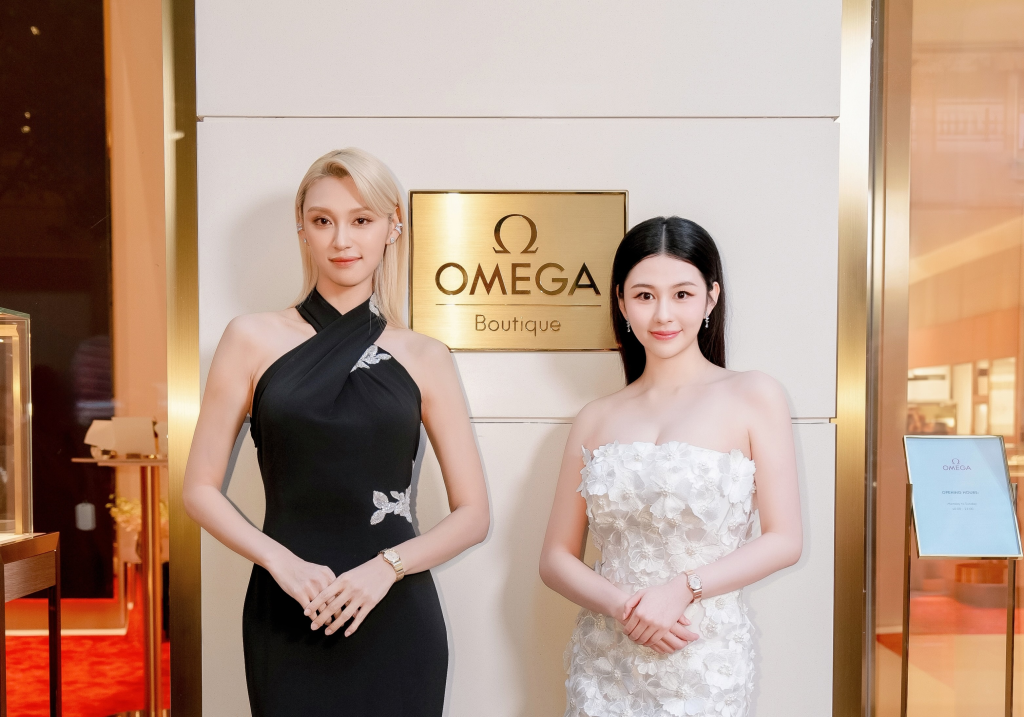 Swiss watchmaker Omega reopens its Causeway Bay store with a celebration attended by local personalities Louise Wong and Ayla Sham