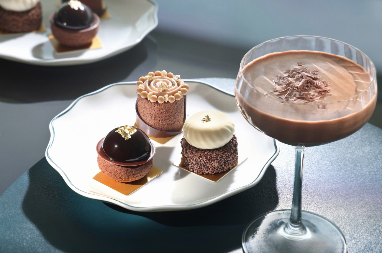Against the breathtaking backdrop of Victoria Harbour, guests can tuck into treats like Choux Chocolat, Roulé Citron Noisette, Marron Cassis Tartlet, Classic Scones, Cacao Madeleines, Cauliflower Wild Mushroom Tiramisu, and even Finger Sandwiches for a bit of a savoury touch. Guests can complement their tea set with a signature chocolate beverage or choose from a selection of premium teas and freshly brewed coffee. For those seeking an additional treat, the Chocolate Martini is a rich blend of vodka, chocolate liqueur, espresso and dark chocolate.