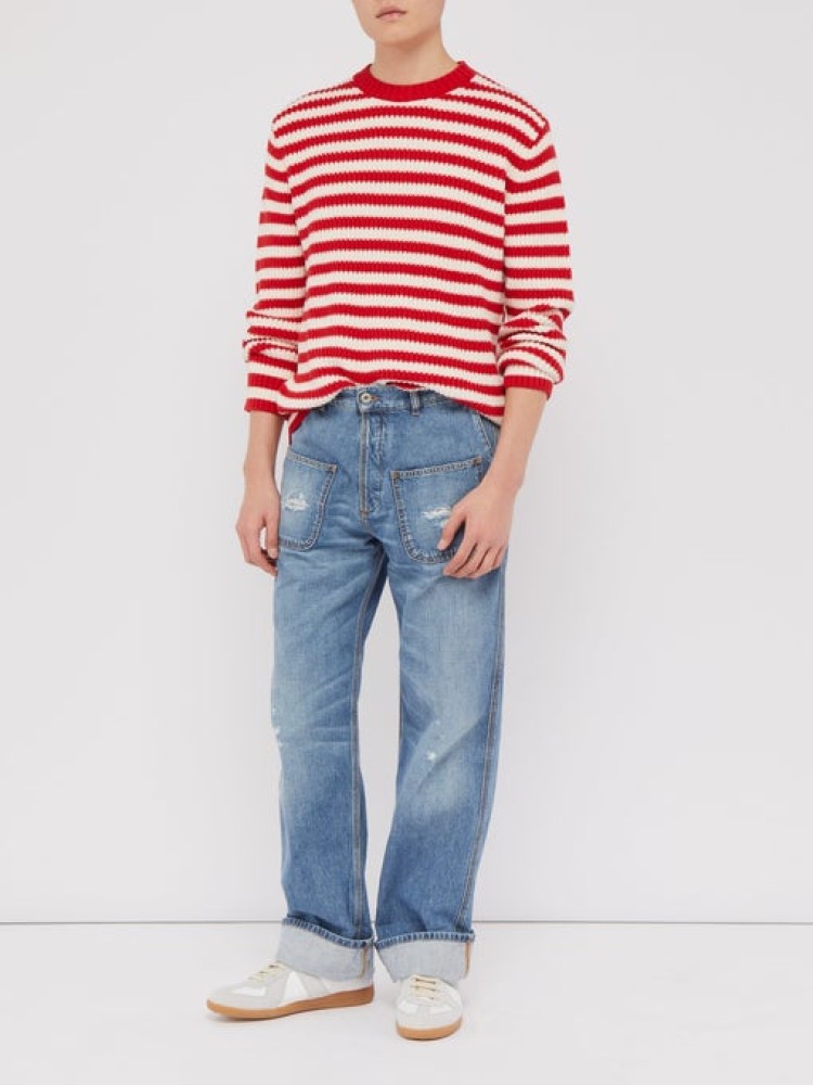 Continuing the ’90s street trend, these red-and-white stripes are on-trend. Designed in Hawaii and made in Italy, Alanui aims to create knitwear that will last throughout your life. Easily pair it with blue jeans and white trainers to heighten that retro feel – and if your boyfriend is one who always needs to match with you, this is a simple option.