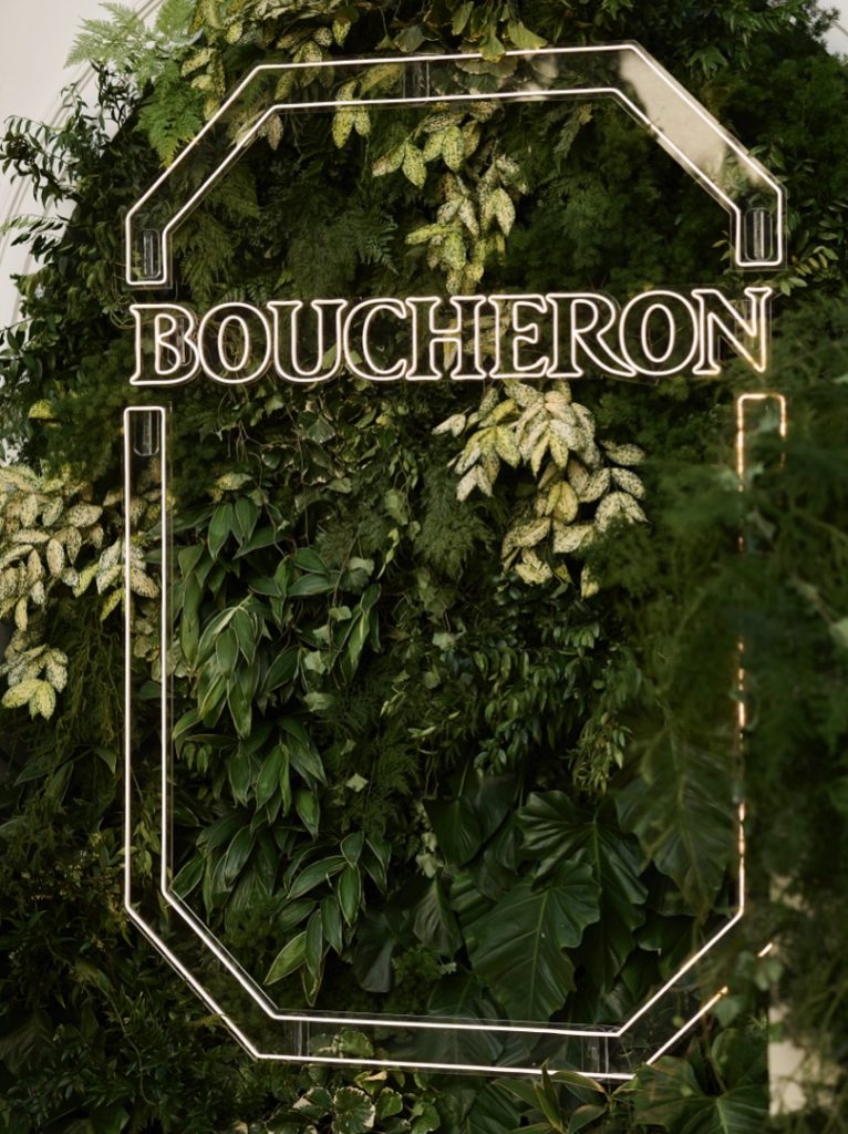 ภายในบริเวณรับรองของบ้านบูเชอรง แขกผู้มีเกียรติได้สัมผัสโชว์สุดพิเศษที่เปิดโอกาสให้ชื่นชมผลงานไอคอนิกของเมซงอย่างใกล้ชิด เริ่มต้นด้วยคอลเลกชัน Quatre ไอคอนร่วมสมัยนับตั้งแต่เปิดตัวในปี 2004 ซึ่งโดดเด่นด้วยเส้นสายกราฟิกอันเป็นเอกลักษณ์ ต่อด้วย Like a Queen จากคอลเลกชันไฮจิเวลรี่ Histoire de Style 2023 และผลงานจาก Nature Triomphante ชูโรงด้วยแหวนอะควาเมรีนซึ่งได้แรงบันดาลใจจากเข็มกลัดคู่ที่สมเด็จพระราชินีนาถเอลิซาเบธทรงได้รับในปี 1937 จับคู่กับสร้อยคอและต่างหู Question Mark จาก Plume de Paon ถ่ายทอดบทสนทนาอันยาวนานระหว่าง Boucheron และธรรมชาติ