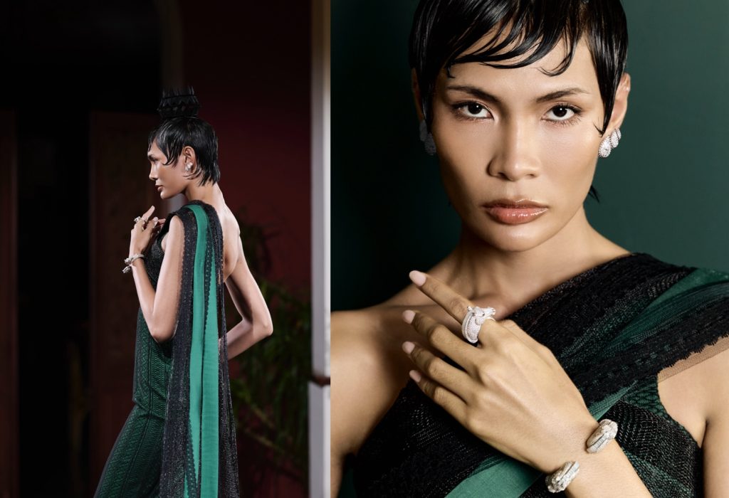 เรื่องราวดำเนินต่อด้วยกำไล Plume de Paon แบบปรับรูปแบบการสวมใส่ได้ ก่อนเข้าสู่ผลงานจาก Animaux de Collection ไม่ว่าจะเป็นกำไลและแหวนจาก Cheval de l’Opéra และต่างหูจาก Serpent Bohème ซึ่งสะท้อนความสมจริงเชิงประติมากรรมและความประณีตในงานช่างอันเป็นหัวใจของเมซง