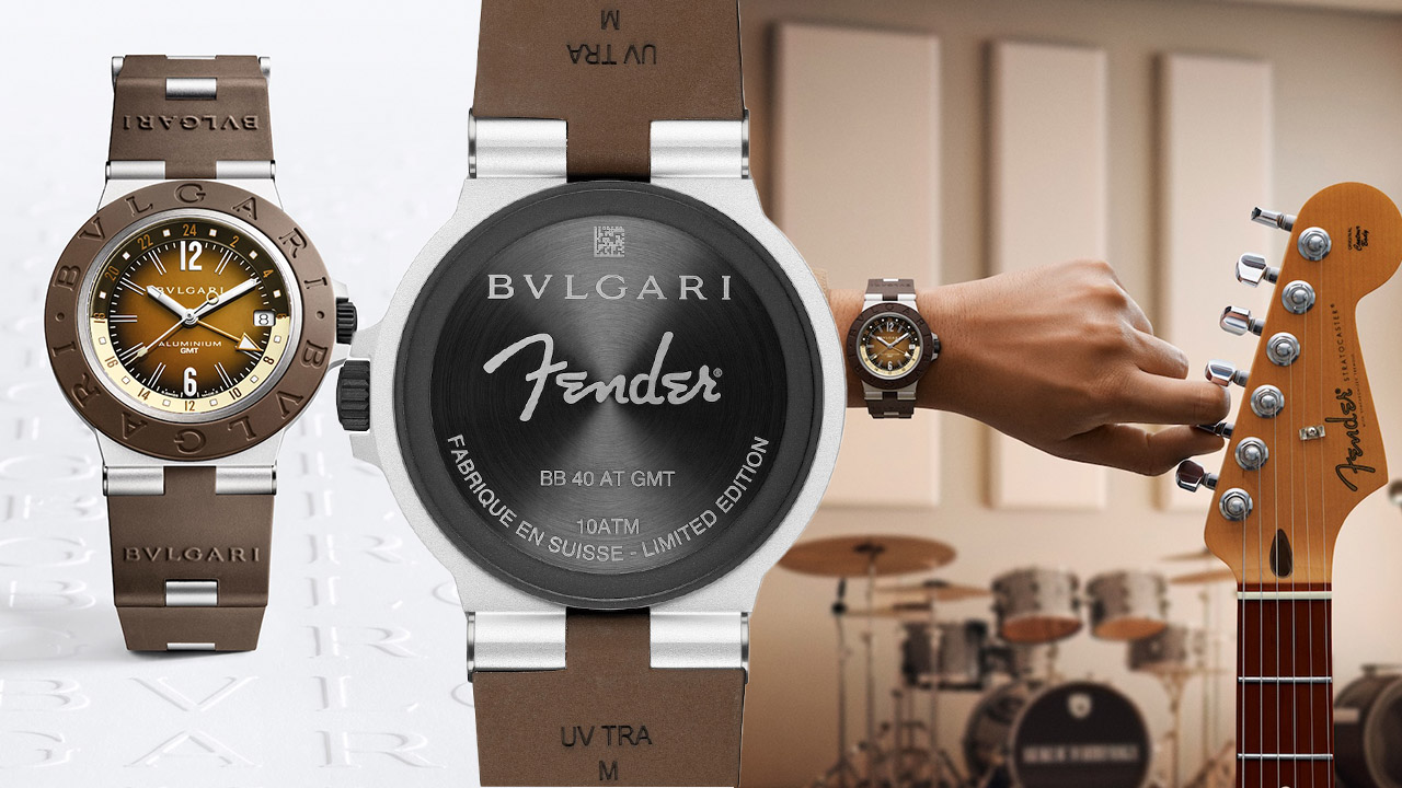 “…Bulgari เปิดตัวนาฬิกา Bulgari Aluminium GMT x Fender Limited Edition งานดีไซน์สุดพิเศษเพื่อเฉลิมฉลองโอกาสครบรอบ 70 ปีของ Fender Stratocaster กีตาร์ไฟฟ้าซึ่งเป็นที่รู้จักระดับตำนาน การร่วมงานกันระหว่างทั้งสองแบรนด์ครั้งนี้ต่างจากรูปแบบการสร้างสรรค์เรือนเวลาแบบเดิมๆ จาก Bulgari แต่มุ่งเน้นงานออกแบบที่มีความสดใหม่ถ่ายทอดเรื่องราวที่สะท้อนถึงจิตวิญญาณของทั้งสองแบรนด์ได้อย่างน่าหลงใหล…”
