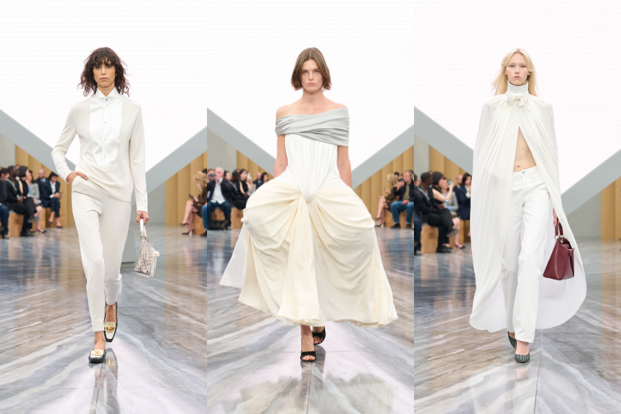 เริ่มต้นด้วย Balenciaga ที่เปิดบทใหม่ของเมซงผ่านผลงานเดบิวต์ของ Pierpaolo Piccioli บนรันเวย์ ฤดูกาล Spring/Summer 2026 ที่ผ่านมา โดยยึดแก่นแท้ของแบรนด์ด้วย “วิธีการ” ของการสร้างสรรค์ ด้วยเสื้อผ้าถูกออกแบบจากความสัมพันธ์ระหว่างเรือนร่างกับผืนผ้า เพื่อเปิดพื้นที่ให้เกิดการเคลื่อนไหวอย่างเป็นธรรมชาติ ถ่ายทอดจิตวิญญาณของมรดกของ Cristóbal Balenciaga ในมุมมองร่วมสมัย