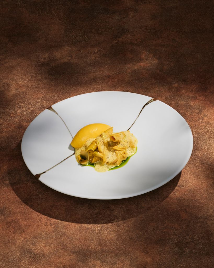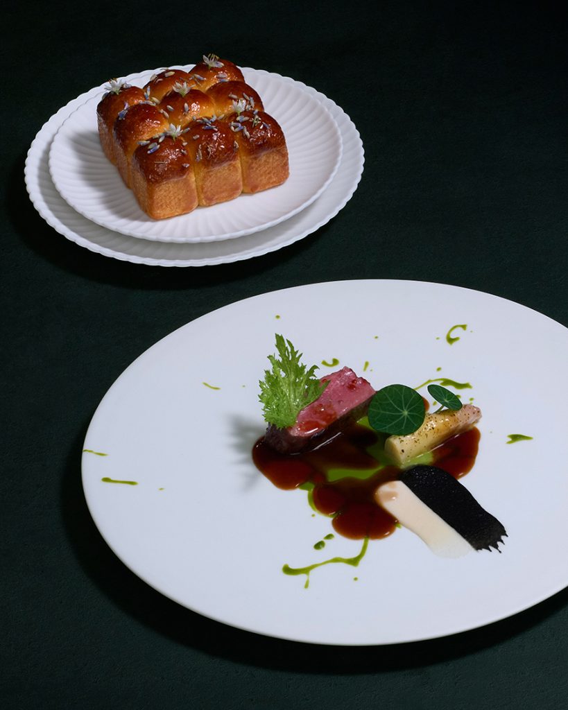 หัวใจสำคัญของเมนูใหม่ประจำฤดูกาลนี้ คือ ‘World Map’ ออกแบบมาให้เป็นทริปแห่งรสชาติข้ามทวีป โดยในแต่ละจานจะพาคุณไปสัมผัสจุดหมายปลายทางที่แตกต่างกันผ่านรสชาติ เทคนิค และจินตนาการ โดยทริปนี้เริ่มต้นที่ที่สหราชอาณาจักรด้วยการตีความใหม่ของ Mock Turtle Tart แป้งทาร์ตสาหร่ายบางกรอบ สอดไส้ด้วยมูสเห็ดเนื้อเบา ตัดรสด้วยซาวร์ครีมและซอสเลอเวจ (Lovage) จากนั้นจึงมุ่งหน้าไปสู่ประเทศเวียดนาม สนุกไปกับ Bánh Mì ในรูปแบบใหม่ ขนมปังบาแก็ตอบสดใหม่สอดไส้เนยฟัวกราส์เนื้อนุ่มละมุน เสริมรสด้วยพริกหวานและเสาวรส สร้างสมดุลระหว่างความเข้มข้นและความสดชื่น และปิดท้ายการเดินทางที่เม็กซิโก ด้วย Tostada สีทองกรอบ ตกแต่งด้วยชูโทโร่และผักดองรสจัดจ้าน มอบสัมผัสที่หนักแน่นและลุ่มลึก