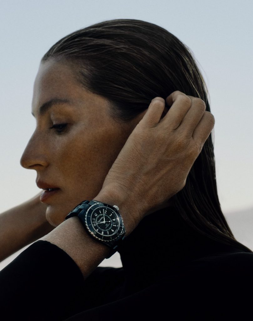 ขณะที่จานถ่วงน้ำหนักแบบ openwork เผยให้เห็นระบบเฟืองกลไกอันมีชีวิตชีวาในรูปทรงวงกลมสมบูรณ์แบบ สะท้อนความหลงใหลของชาเนลต่อสัดส่วนที่สมดุลและเส้นสายอันบริสุทธิ์ เพื่อถ่ายทอดเสน่ห์ของสปอร์ตวอทช์ไอคอนิกเรือนนี้ ในแคมเปญล่าสุดชาเนลได้ร่วมงานกับ Gisele Bündchen และ Clément Chabernaud สองโมเดลที่สะท้อนทั้งพลัง ความสมดุล และจิตวิญญาณแห่งการผจญภัยในท้องทะเล ซึ่งเป็นหัวใจของ J12 อย่างแท้จริง