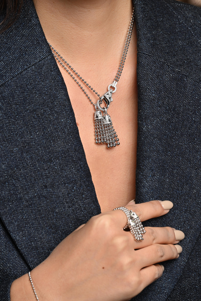 Panthère de Cartier WG necklace, ring, bracelet pompon and Panthère de Cartier watch. Photo: Cartier