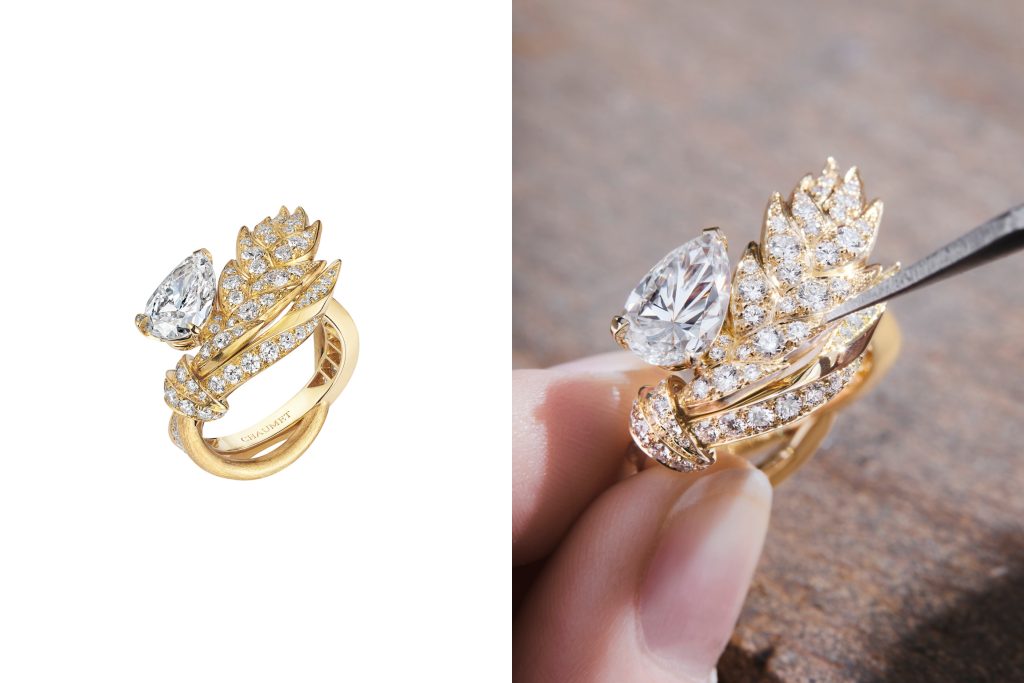 Chaumet ได้หลอมรวมเสน่ห์แห่งอดีตเข้ากับดีไซน์ร่วมสมัยเพื่อสร้างสรรค์เครื่องประดับรวงข้าวสีท่องอร่ามอันส่องประกายไปด้วยเพชรน้ำงามที่ชวนหลงใหลในทุกมิติ